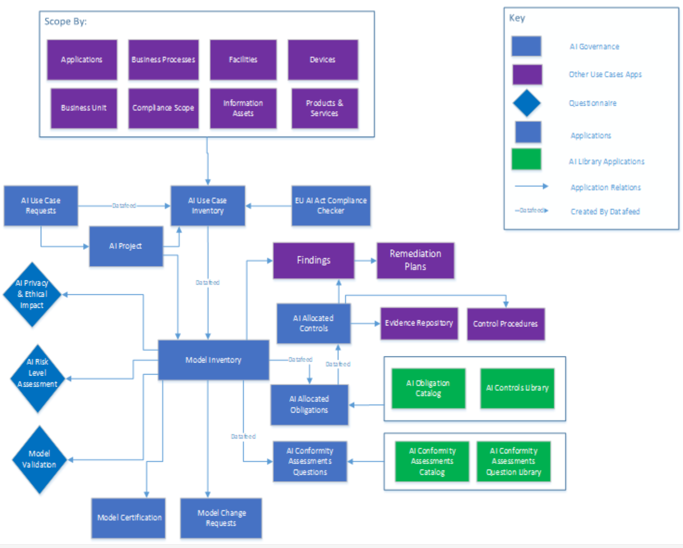 The following diagram shows the relationships between the applications in the AI Governance use case.