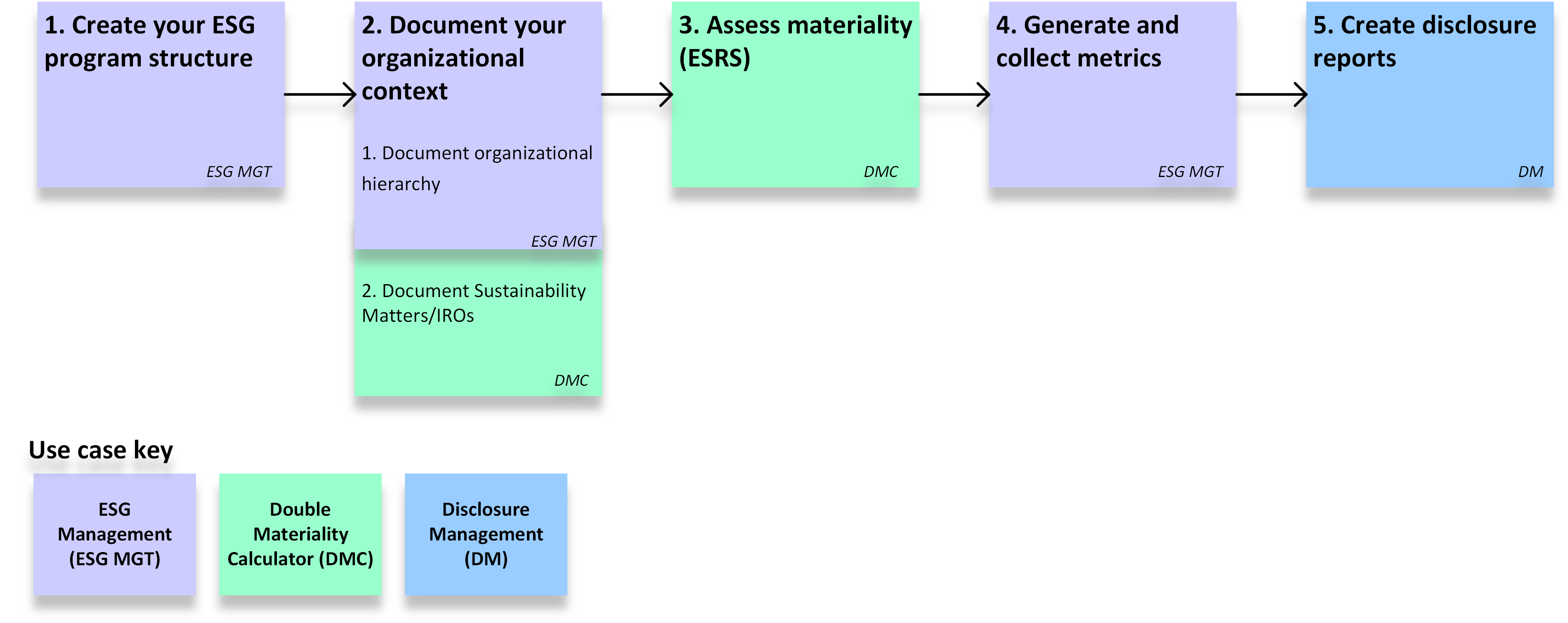 The following diagram shows the overall process for complying with CSRD and which Archer use case covers each process.