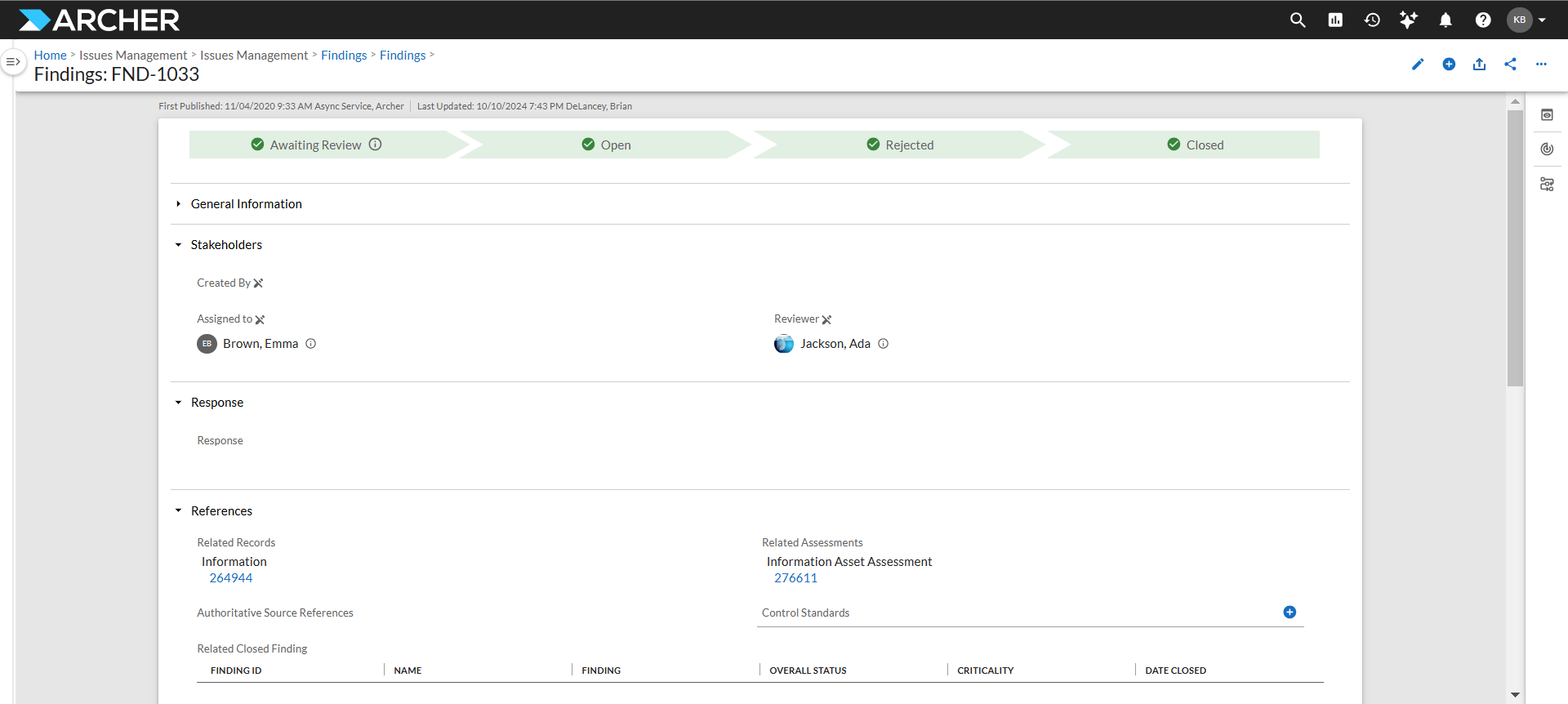 Archer announces the upgrade of the SaaS Archer 2024.09 release. This release includes new features, in addition to the changes released with 2024.09, 2024.09.01, and 2024.09.02.